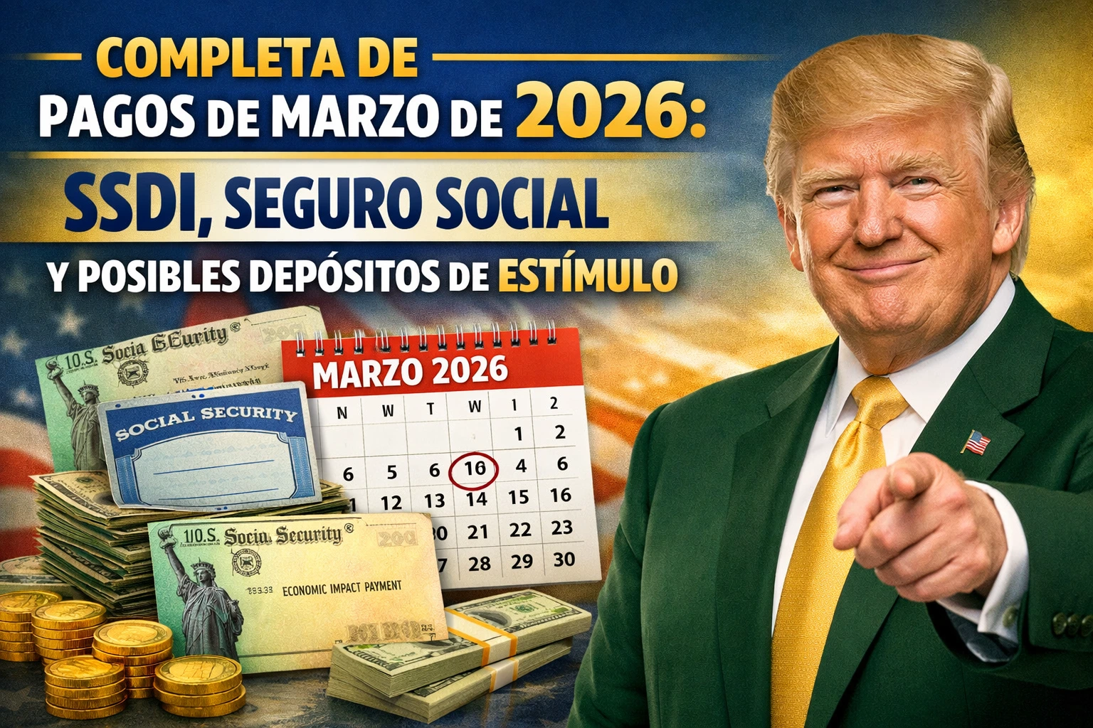 Durante marzo de 2026, millones de beneficiarios en Estados Unidos esperan recibir sus pagos mensuales de Seguro Social y SSDI (Seguro por Incapacidad del Seguro Social). Además, muchas personas también buscan información sobre posibles depósitos de estímulo o pagos adicionales que podrían llegar junto con los beneficios regulares.